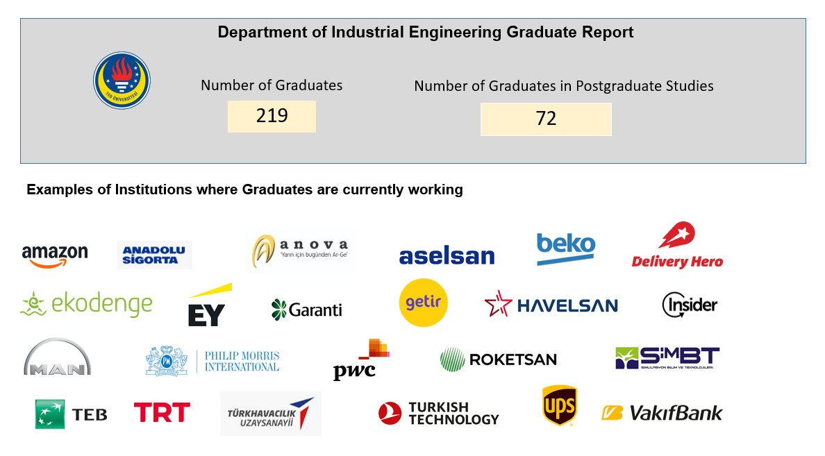 Graduates of undergraduate program in Industrial Engineering at TED University, pursue careers primarily in the defense industry followed by other sectors including automotive, logistics, finance and business consulting. They work as engineers, specialists, and managers across various functional departments including planning, work design, logistics, and finance in a wide range of manufacturing and service organizations. Those interested in furthering their education at the graduate level have the option to continue their studies both domestically and internationally.